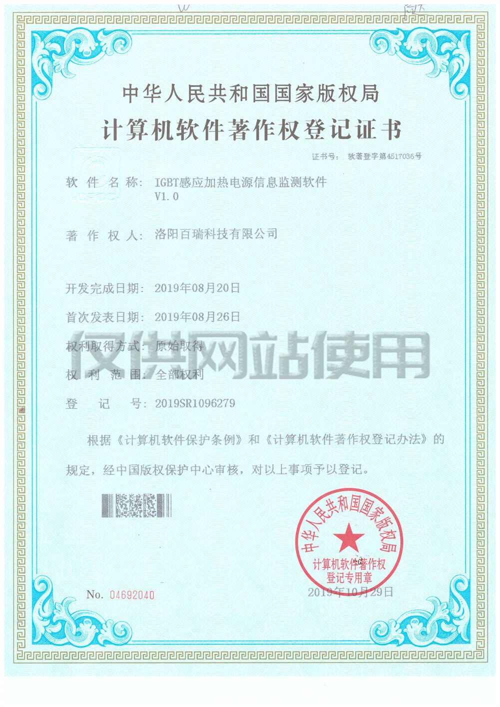 計算機軟件著作權(quán)登記證書1
